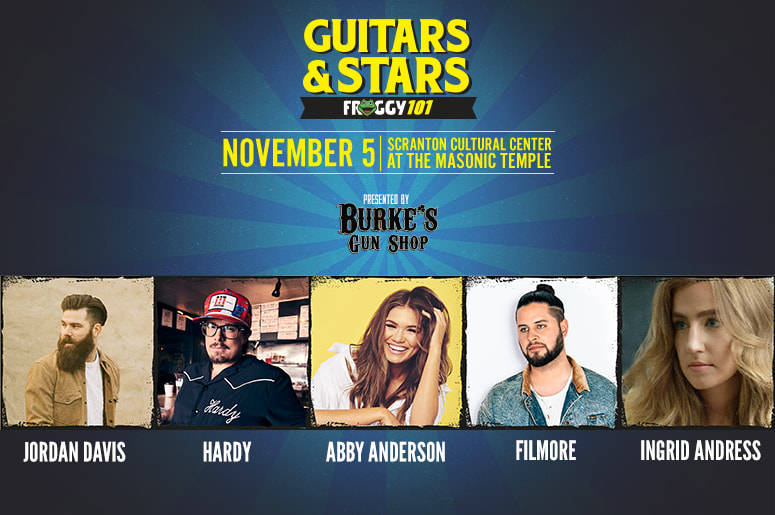 | Country Club | | | | Froggy 101's Guitars & Stars presented by Burke's Gun Shop is Tuesday, November 5th at the Scranton Cultural Center at the Masonic Temple. Be the first to get your tickets, including a limited number of VIP's to see: - Jordan Davis