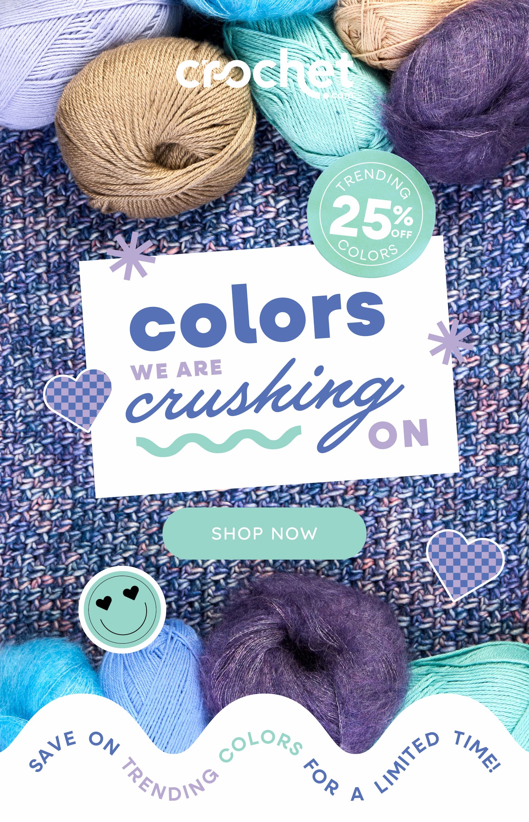 *Free shipping excludes downloads and items shipped directly from the manufacturer. All prices shown in email marketing and promotional materials from WeCrochet® are listed in USD. WeCrochet® and crochet.com are registered trademarks of Local Crafts Group, LLC. ©2019-2026 WeCrochet. All rights reserved. You signed up to receive emails at this address thegblogindy@gmail.com. If you do not wish to receive our emails, you may Unsubscribe at any time. 13118 NE 4th Street | Vancouver, WA 98684 | | | | |